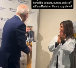 “Rung the bell! Thank you to the incredible doctors, nurses, and staff at Penn Medicine. We are so grateful!”