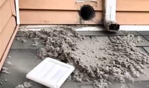 Here’s the part that makes this trick legendary. Go outside to your dryer’s exhaust vent, remove the cover, and place the leaf blower nozzle inside.