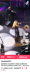 The Grand Ole Opry — a venue that has hosted country music legends for nearly 100 years — welcomed Carpenter with open arms and curious hearts. Known primarily as a pop artist, her debut marked a bold moment of crossover between genres.