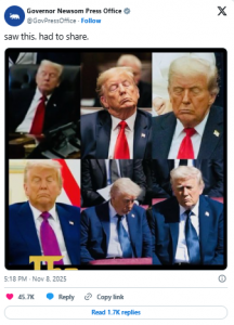 California Governor Gavin Newsom’s office even joined in, posting a collage labeled “The Nodfather,” turning the quiet moment into a viral sensation.